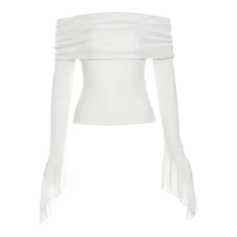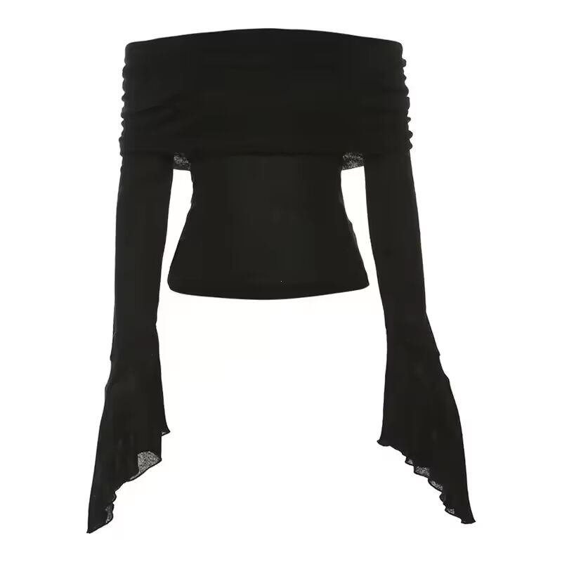 【送料無料◎】 Y2k 美的シンプルなファッション女性の Tシャツスラッシュネック長袖固体カジュアル Tシャツヴィンテージオフショルダートレンディな Tシャツ