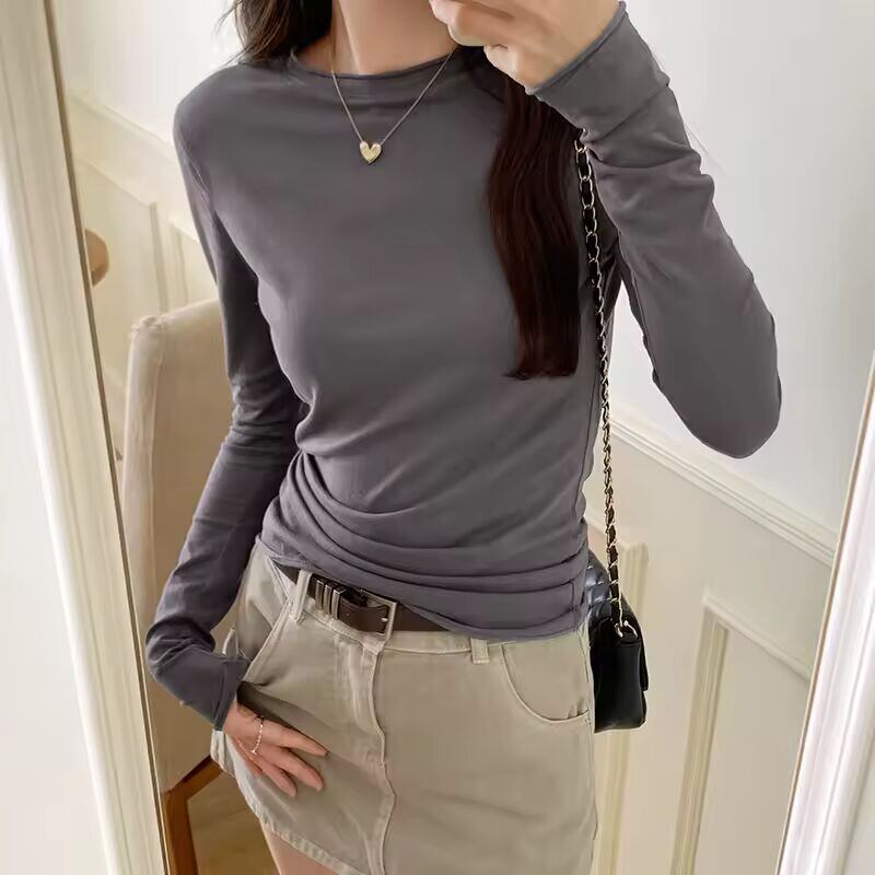 【送料無料◎】 女性用長袖ラウンドネックTシャツ,カジュアルなストリートウェア,ベース,高品質,春,秋,2022