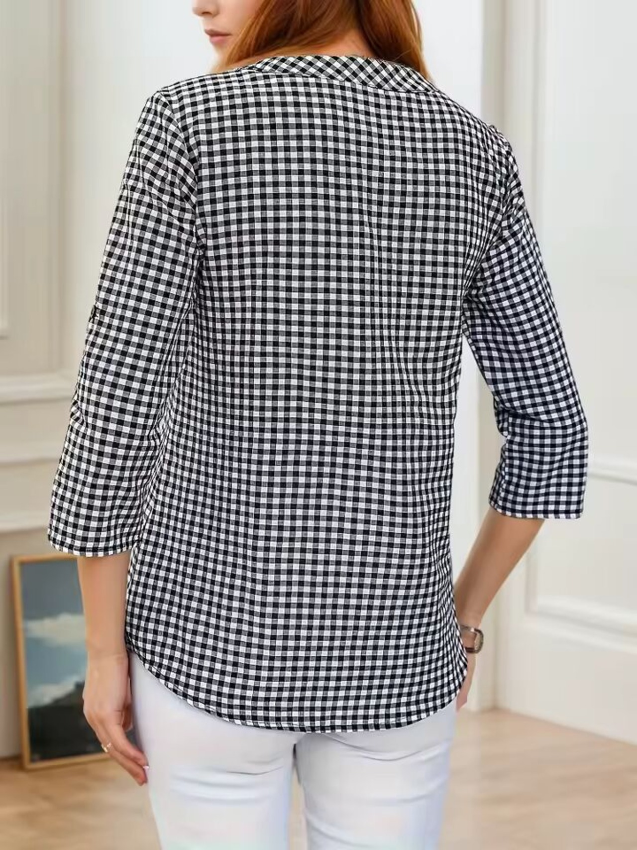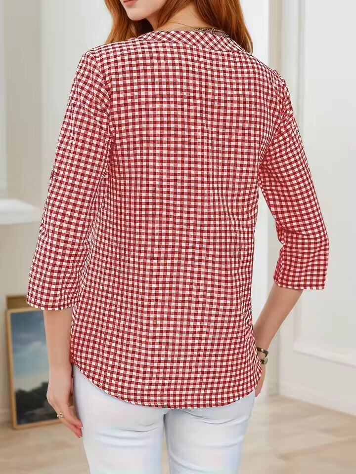 【送料無料◎】 プラスサイズ 上質チェック柄トップス ファッション レディース 長袖 Vネック ブラウス スリムフィット 春秋 気質トップス お腹カバーシャツ