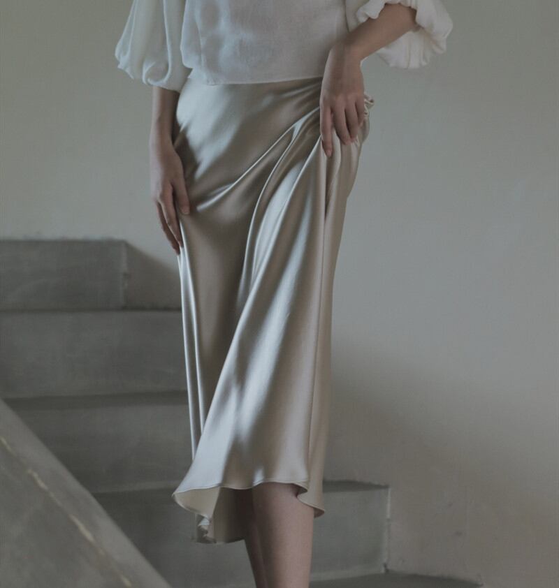 ◎【送料無料】スカート ロング丈 春夏 光沢感 フレアスカート ボトムス レディース Aライン かわいい