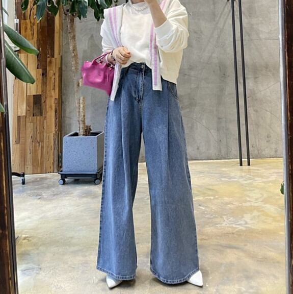 ◎【送料無料】パンツ ボトムス デニム レディース ワイドパンツ ハイウエスト デニムパンツ ジーンズ 体系カバー