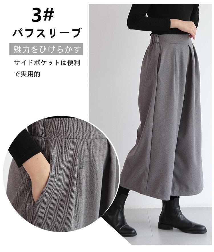 ◎【送料無料】ワイドパンツ パンツ レディース 9分丈 秋冬 ふんわり 暖かい スカーチョ ボリューム ガウチョパンツ