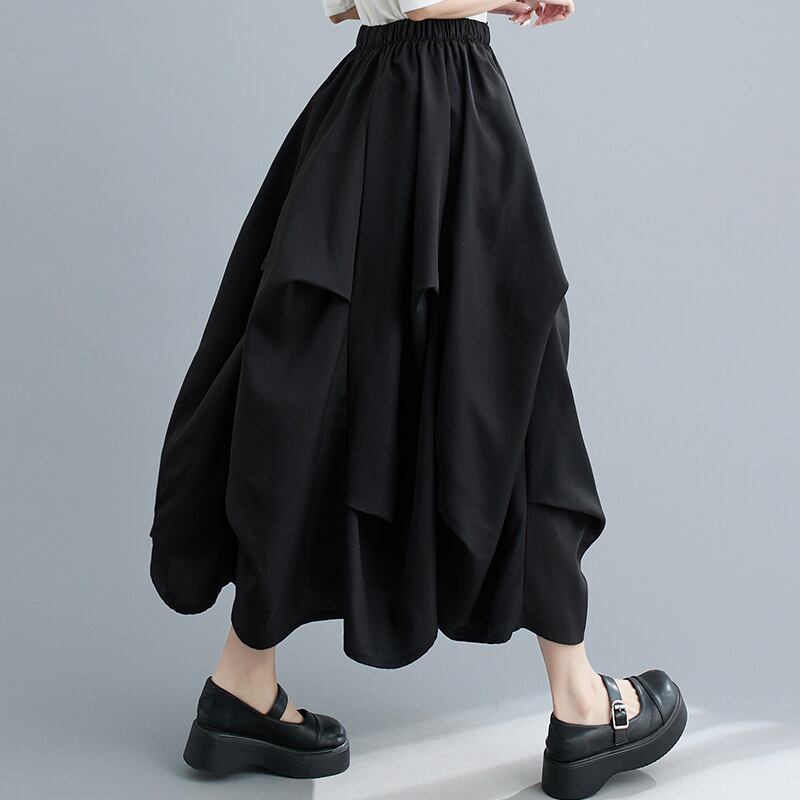 ◎【送料無料】スカート ボトムス ロング丈スカート ボリューム 不規則デザイン ウエストゴム 体型カバー 着回しやすい