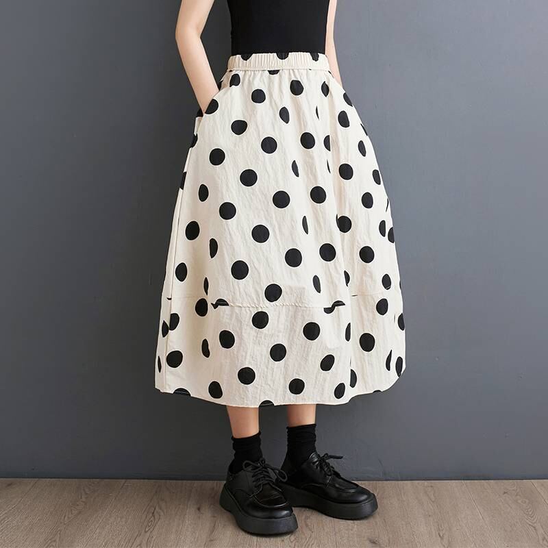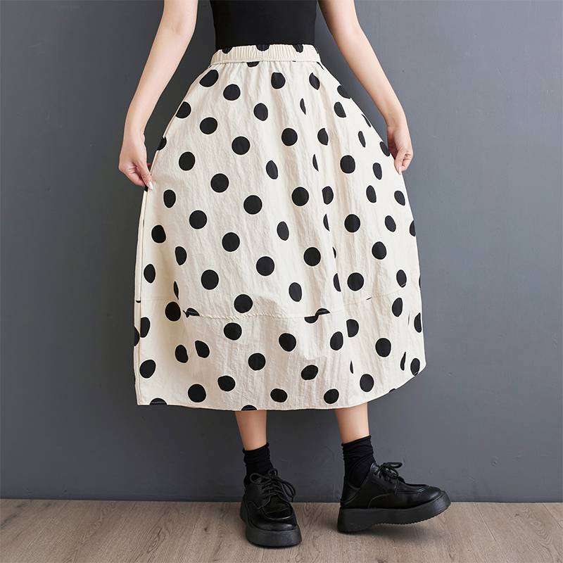 ◎【送料無料】スカート ドット柄 ボトムス ロング丈スカート 秋新作 かわいい おしゃれ 着回しやすい