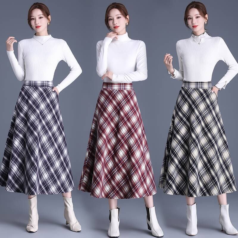 ◎【送料無料】ボトムス 2026年秋冬新作 スカート フレアスカート ロング丈スカート チェック柄 きれいめ 大人