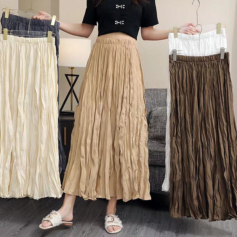 ◎【送料無料】スカート ロングスカート ボトムス ミモレ丈 レディース ゆったり ウエストゴム ハイウエスト 全6色