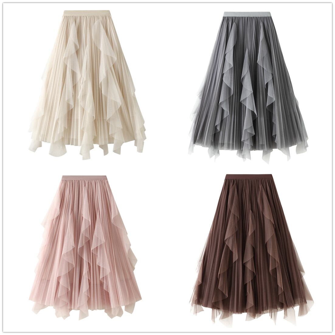 ◎【送料無料】2026春夏新作 スカート プリッツスカート ロング丈 ウエストゴム ハイウエスト 可愛い 全7色