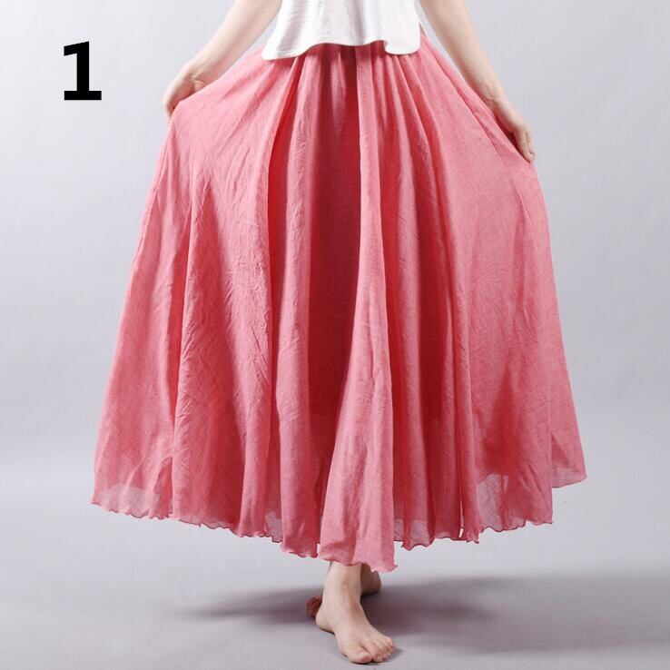 ◎【送料無料】フレアスカート マキシ丈スカート 綿麻スカート ロングスカート 旅行