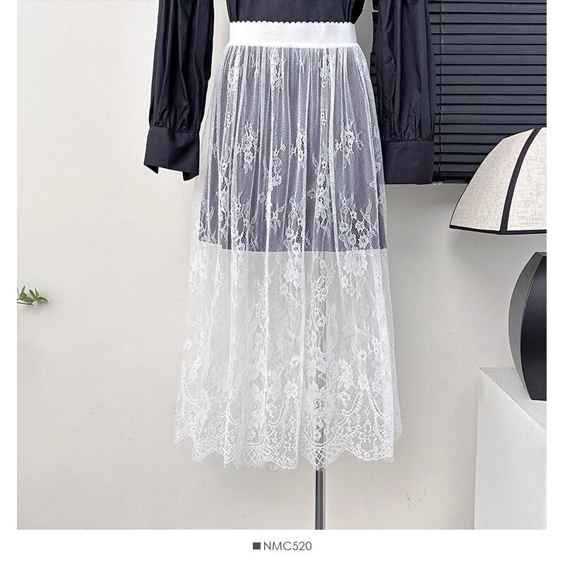 ◎【送料無料】2026春夏新作 花柄 レーススカート ロング丈スカート 重ね着 レディース 透け感 ブラック ホワイト