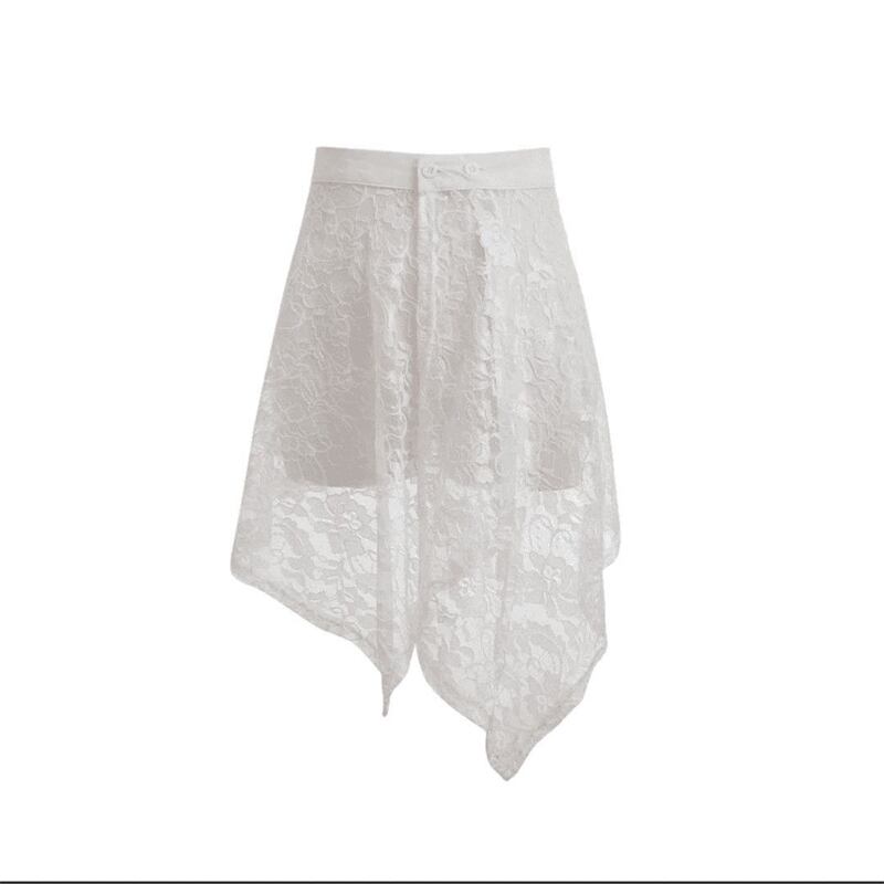 ◎【送料無料】2026春夏新作 花柄 レーススカート 不規則スカート ミニスカート 重ね着 レディース 透け感 ブラック