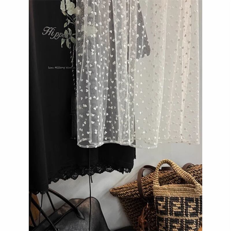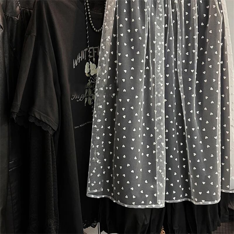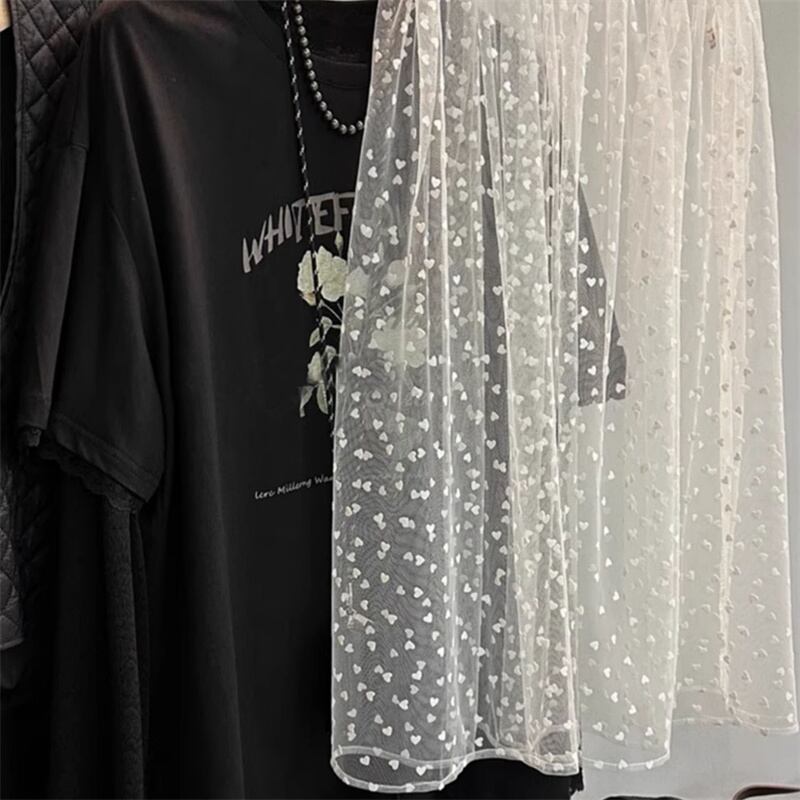 ◎【送料無料】2026春夏新作 ハート柄 レーススカート ロングスカート 重ね着 レディース 透け感 オシャレ