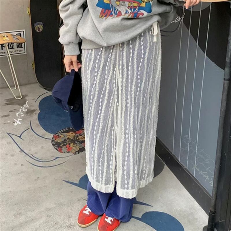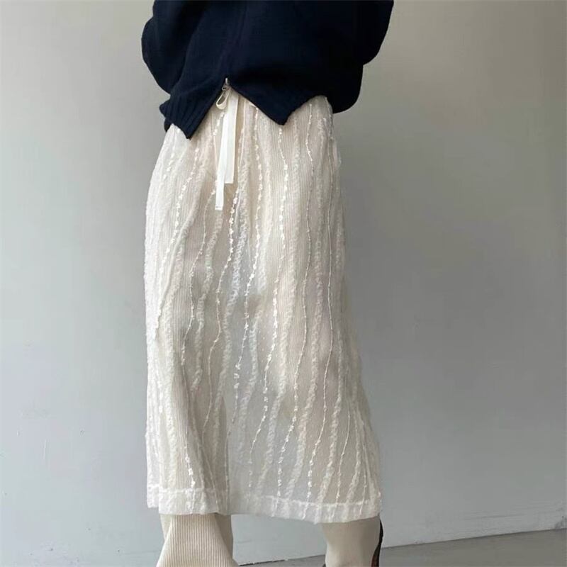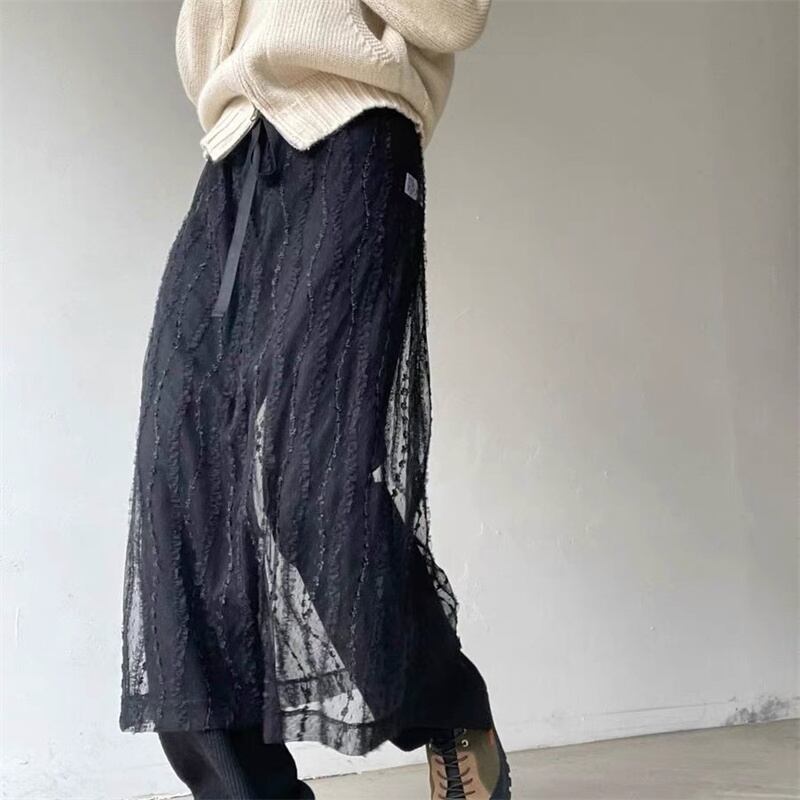 ◎【送料無料】2026春夏新作 リボン付き レーススカート ロングスカート 重ね着 レディース 透け感 オシャレ