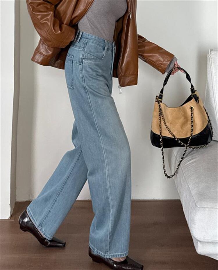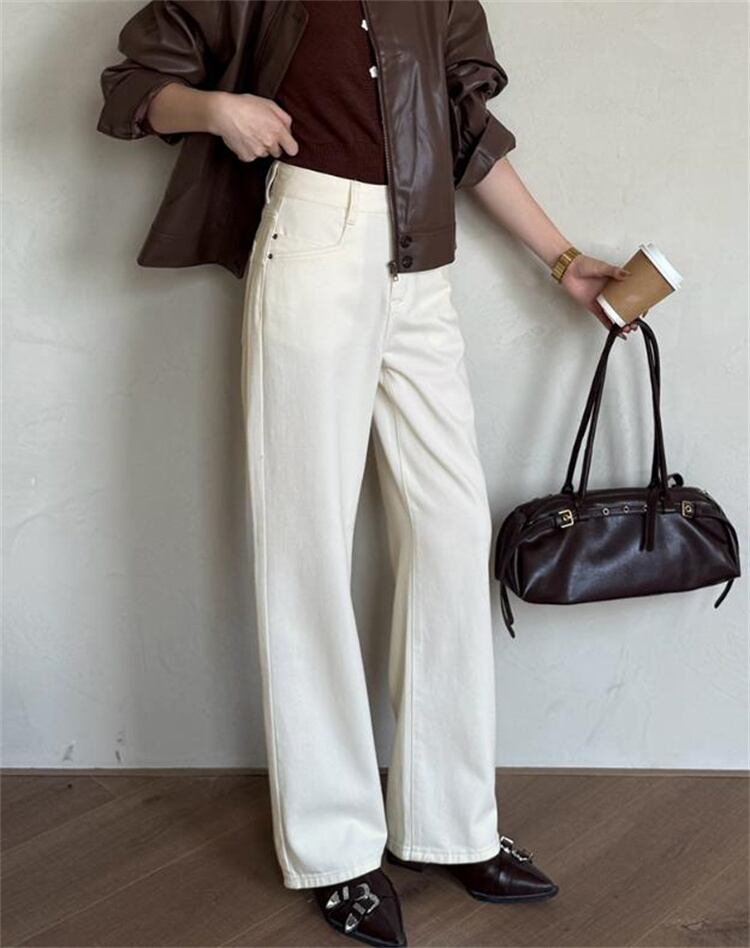 2025秋冬 レディース ハイウエスト ストレートジーンズ 新作