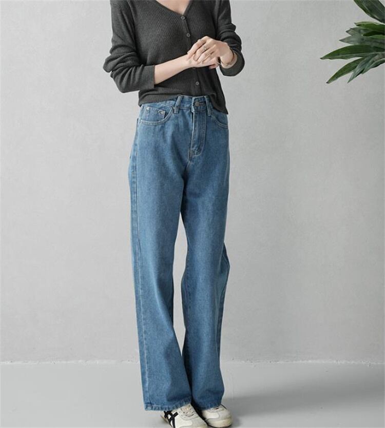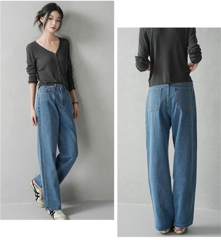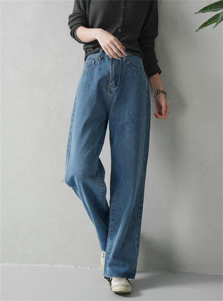 ハイウエストストレートジーンズ 2025秋冬モデル ロング リラックスカジュアル