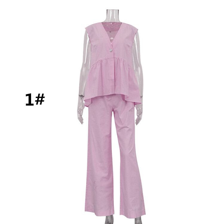 ◎【送料無料】セットアップ 上下セット トップス レディース ノースリーブ Vネック ロングパンツ 2点セット