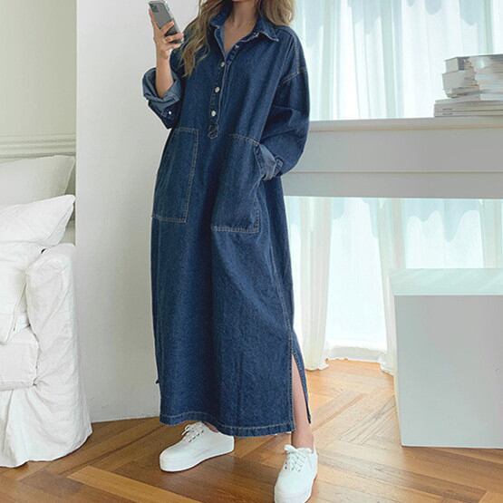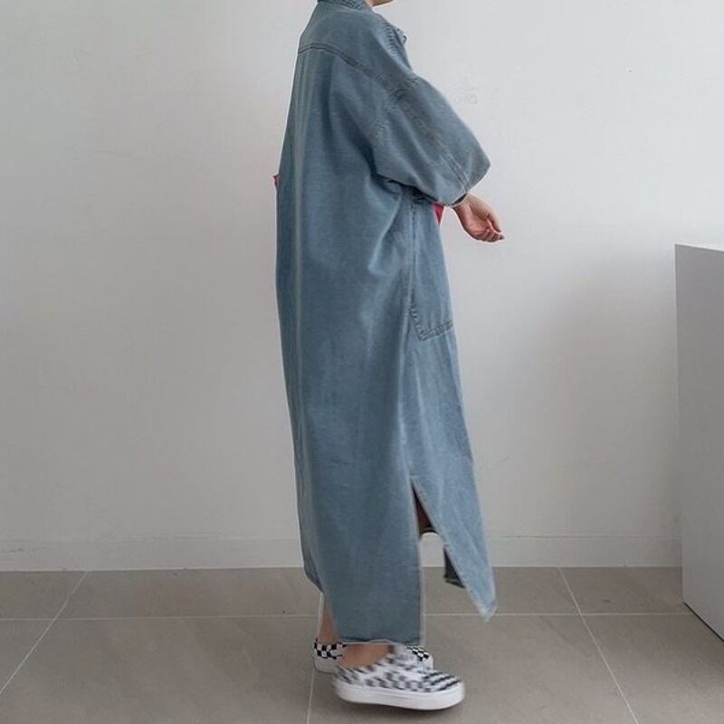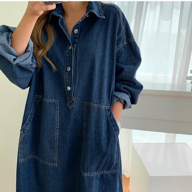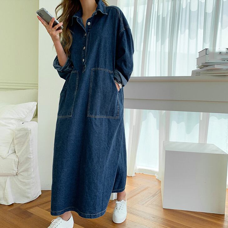 ◎【送料無料】ワンピース シャツワンピース デニム レディース デニムワンピース ロング丈 大きいサイズ 長袖