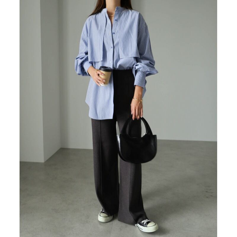 ◎【送料無料】2026年新作 ブラウス シャツ 長袖ブラウス ボーダー柄 トップス レディース 通勤OL ゆったり 気質 きれいめ