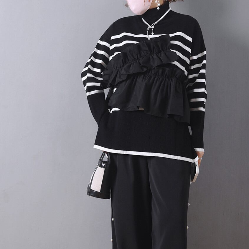 ◎【送料無料】2026年新作 セーター ハイネック プルオーバー ニット トップス レディース ニットセーター 異素材 気質