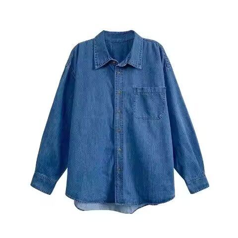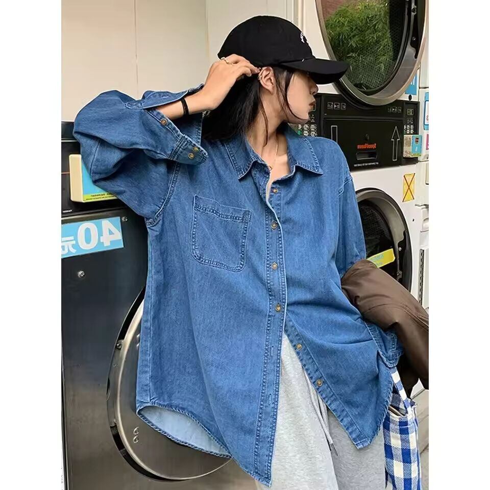 【送料無料◎】 デニムコート女性のためのルーズトップカジュアルシャツヴィンテージ服女性トップスシャツブラウス