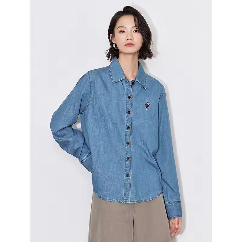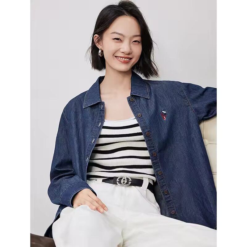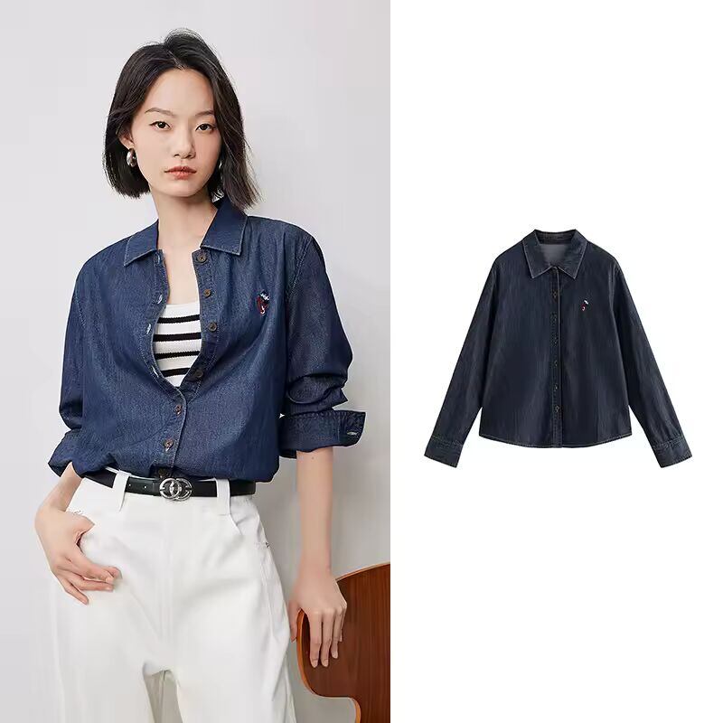 【送料無料◎】 Toyouth-女性用ピュアコットンポロシャツ襟ブラウス,長袖シャツ,刺embroidery,ハイストリート,デニムジャケット,新しい秋のコレクション2024