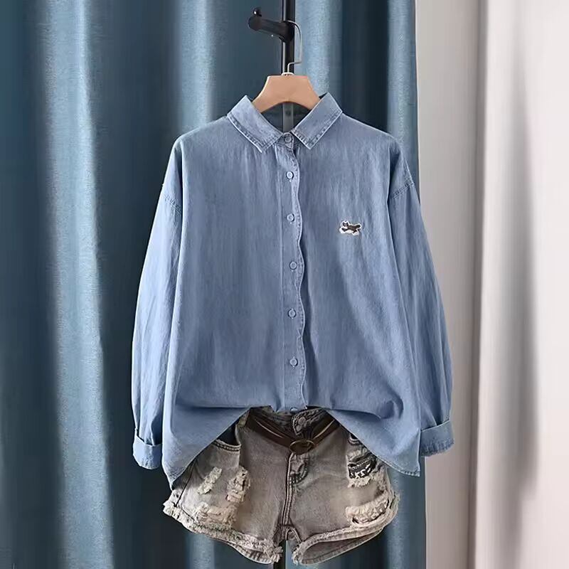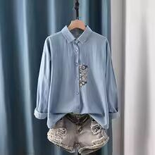 【送料無料◎】 原宿 y2k デニムシャツ女性春トップス韓国のファッション長袖花刺繍デニムブラウスデザイナージャンシャツ