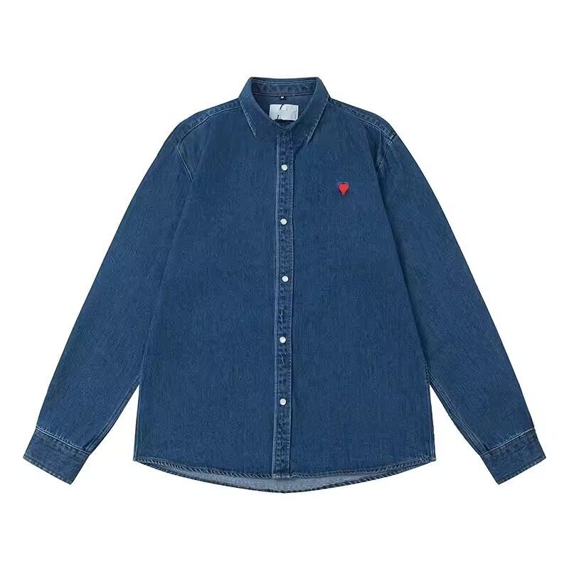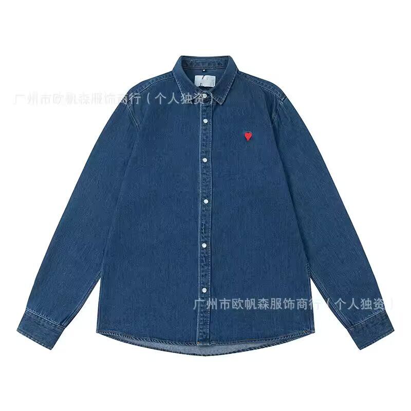 【送料無料◎】 カジュアルコットンデニムシャツ メンズ レディース ラブ刺繍 オールマッチ 長袖 快適 レジャー クロスボーダースタイル