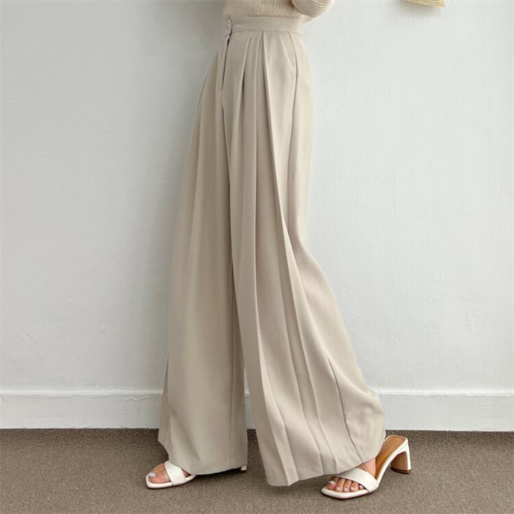 ◎【送料無料】流れるラインのハイウエストワイドパンツ カジュアルスタイル