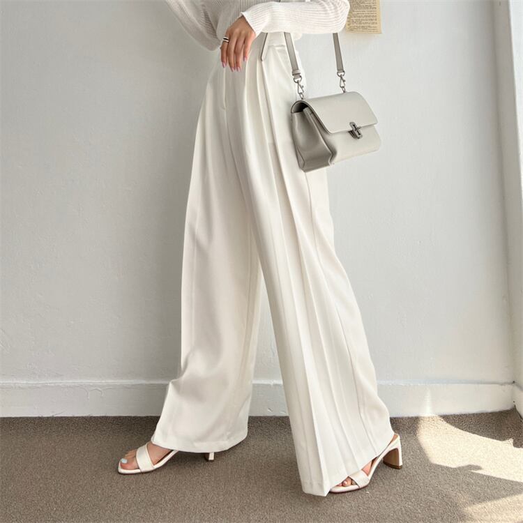 流れるラインのハイウエストワイドパンツ カジュアルスタイル