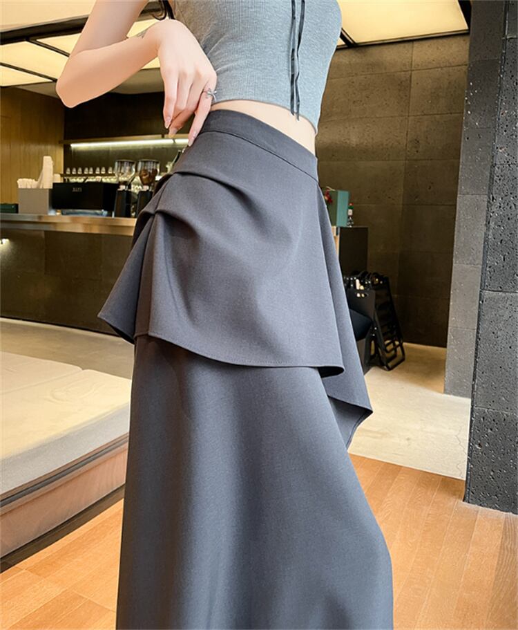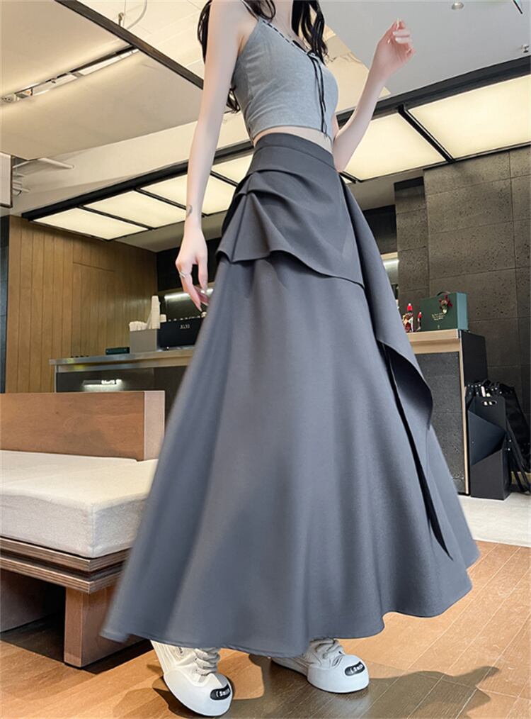 不規則フリルヘム ロングAラインスカート ハイウエスト 2025夏季 裾広がりデザイン