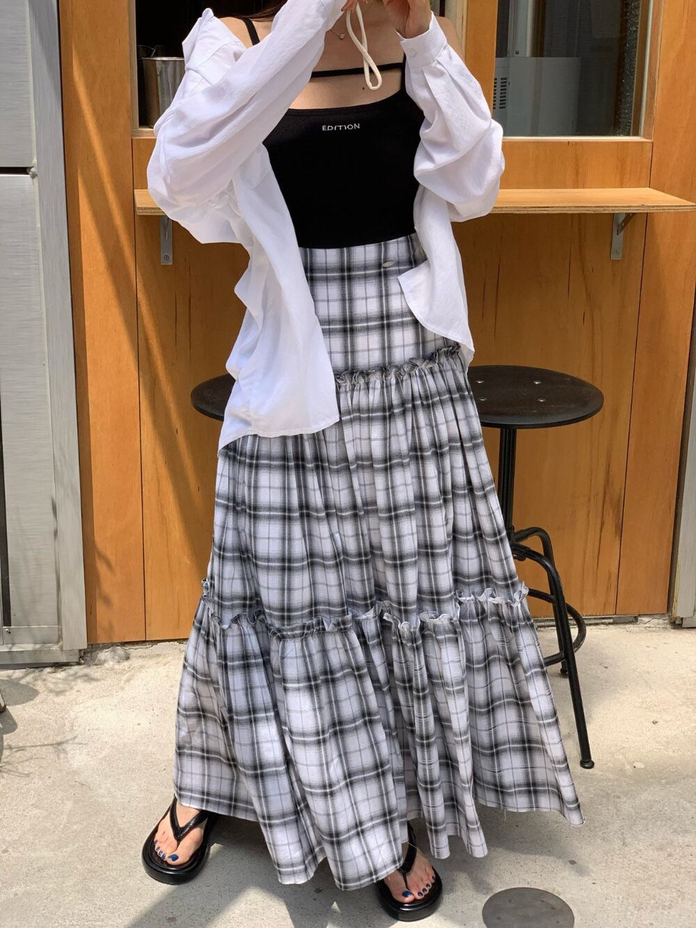 春夏にピッタリな素材のスカートは今季注目のアイテム。