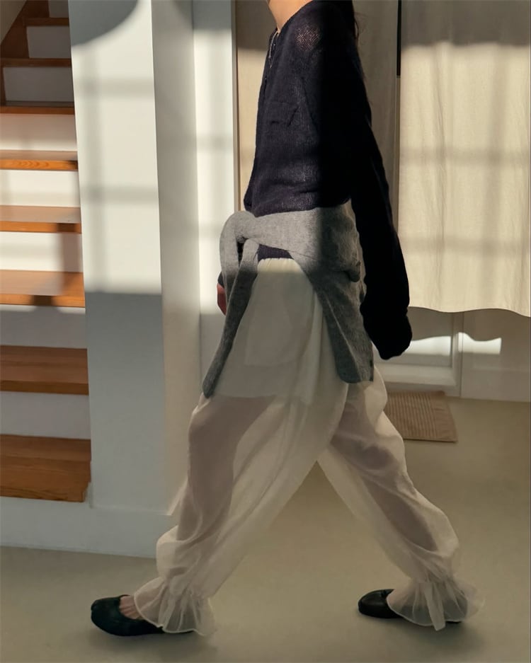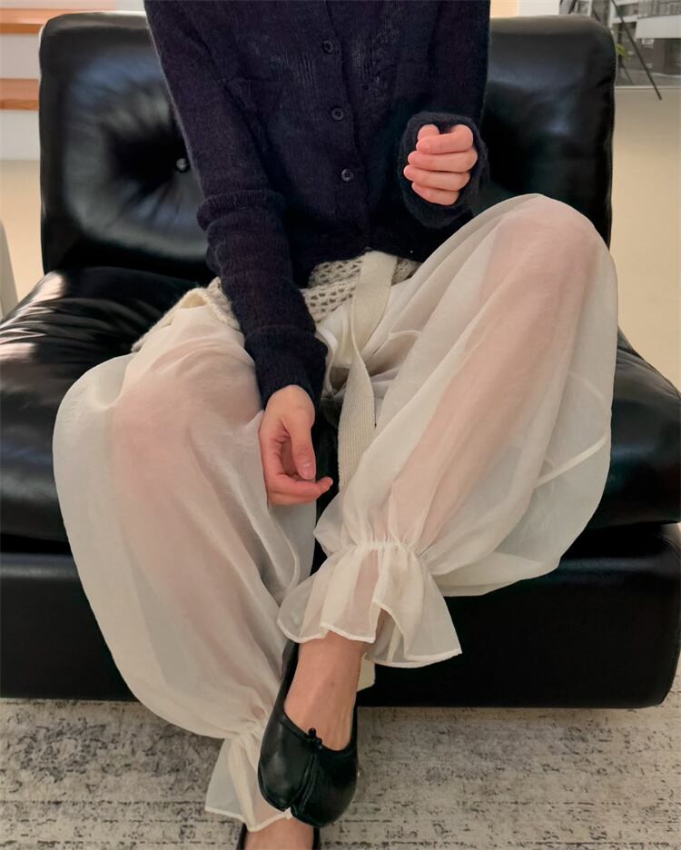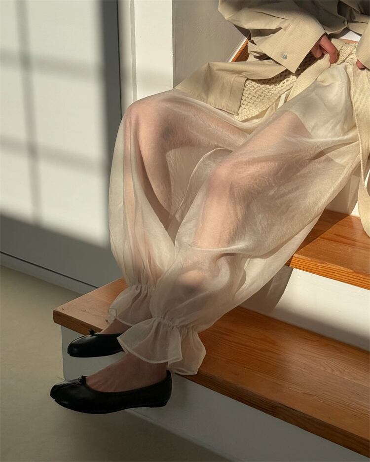 立体感のあるシースループリーツ 夏向けストレスフリーパンツ
