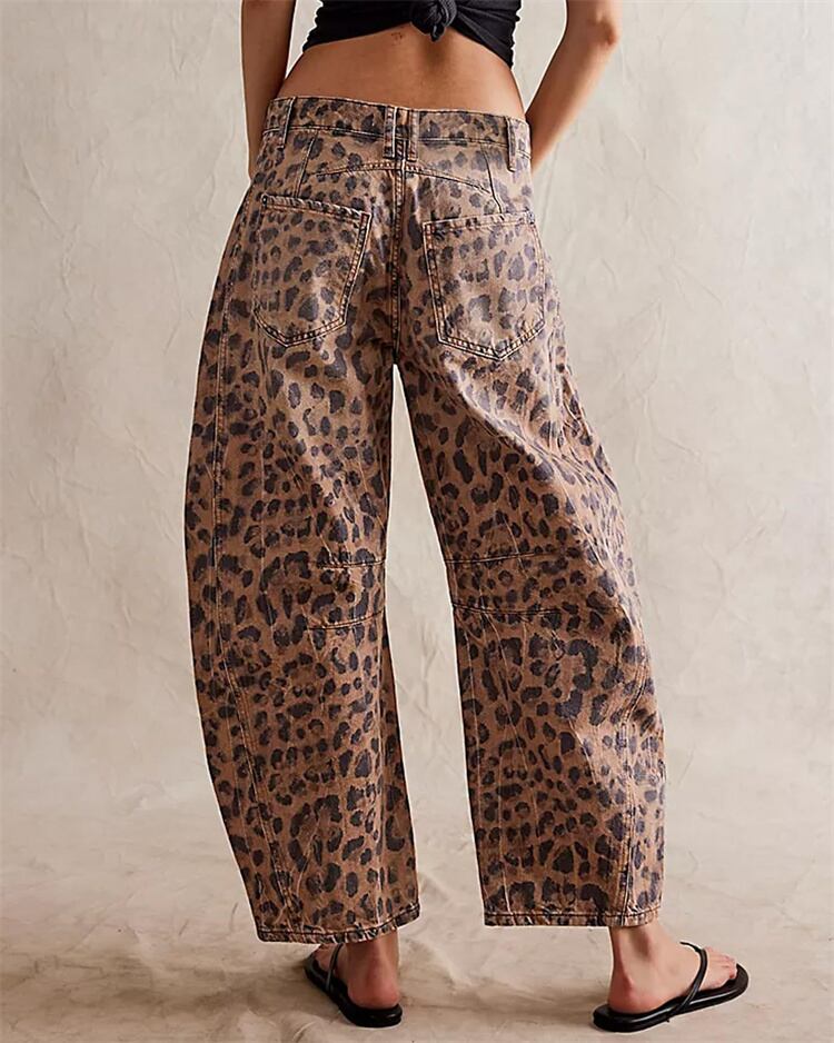 ファッションデニム ミッドローウエスト ゆったりワイドレッグ ロングパンツ