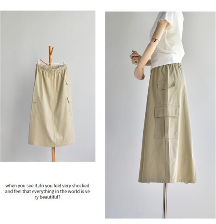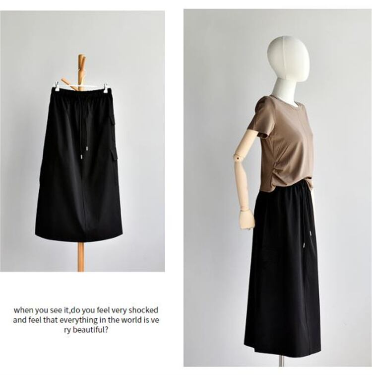 ◎【送料無料】2025年トレンド必見 ハイウエストストレートスカート レトロワークスタイル スリットデザイン