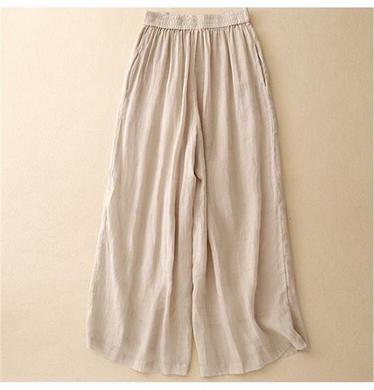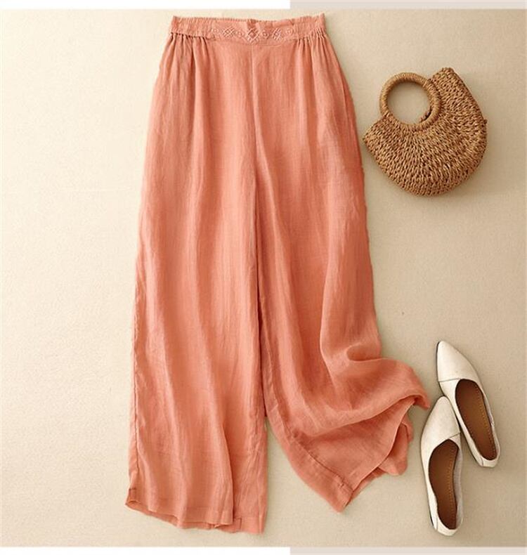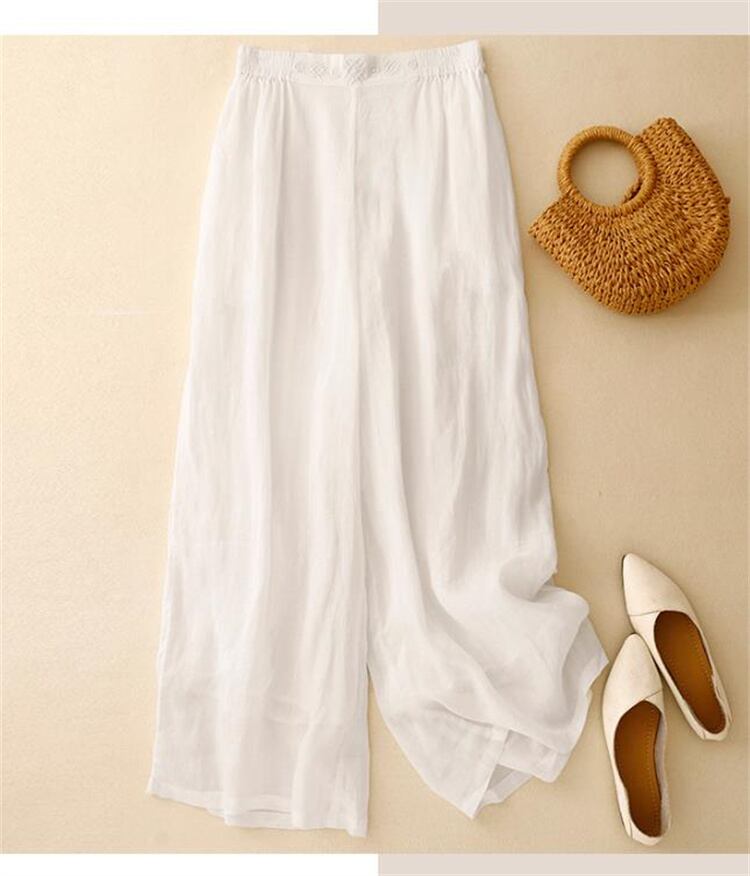 ◎【送料無料】リラックス ボヘミアン風 ししゅう ワイドレッグパンツ オーガニックコットン インナーライナー付き