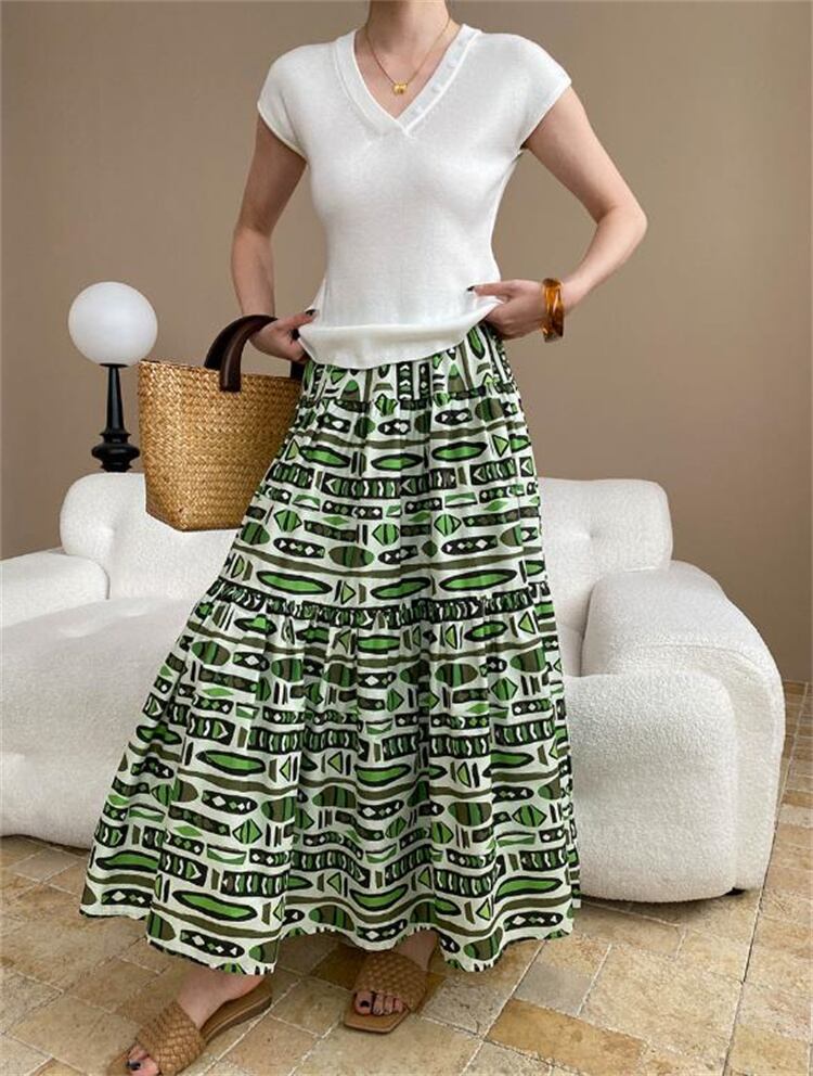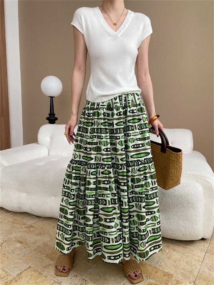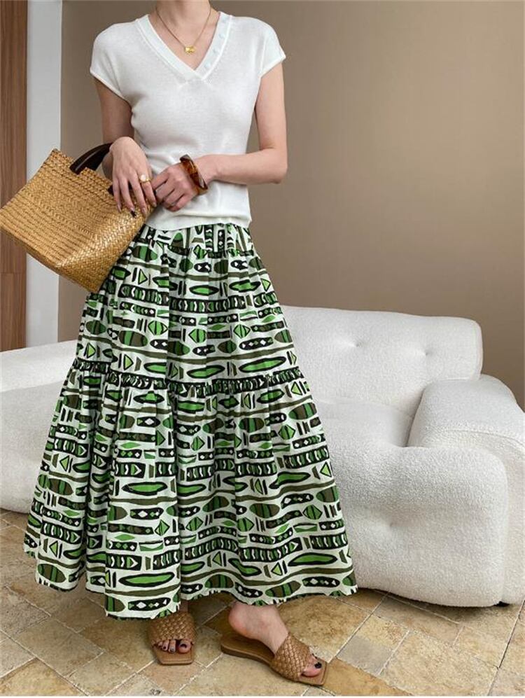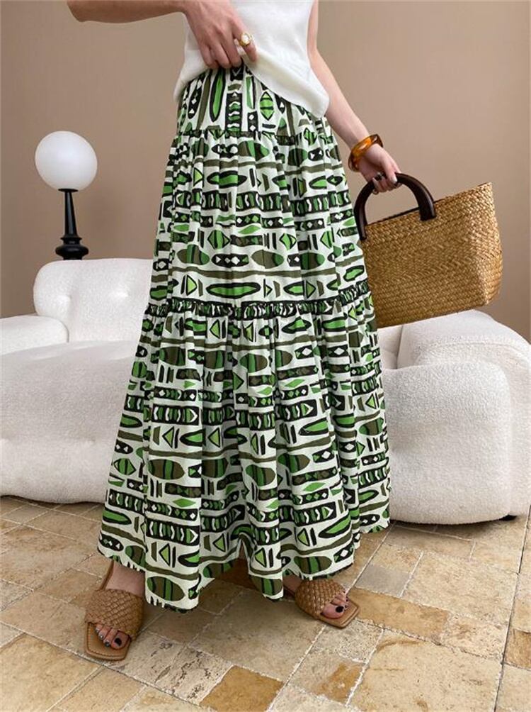 アーティスティックな雰囲気漂うAライン半身長スカートです!ゆったりとしたワイドA字シルエットが、ボディラインを優しくカバーし、脚長効果を叶えるデザイン。高ウエスト切り替えでスタイルアップを実現し、リラックス感のあるゴム入りウエストはストレスフリーな着心地。フロアタッチの丈感がエレガントな揺れを演出し、レトロモダンなプリントが個性を際立たせます。デイリーからオケージョンまで幅広く使える、こなれ感たっぷりの1着です。