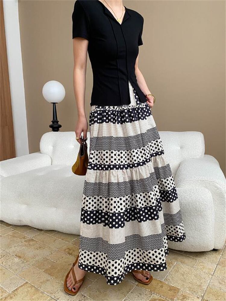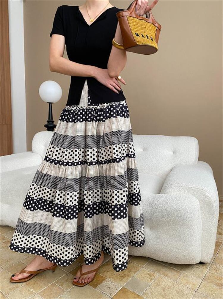 ◎【送料無料】夏のリゾートに! アートドット - 高腰Aラインスカート ふんわりシルエット【インスタ映え/大人カワイイ】