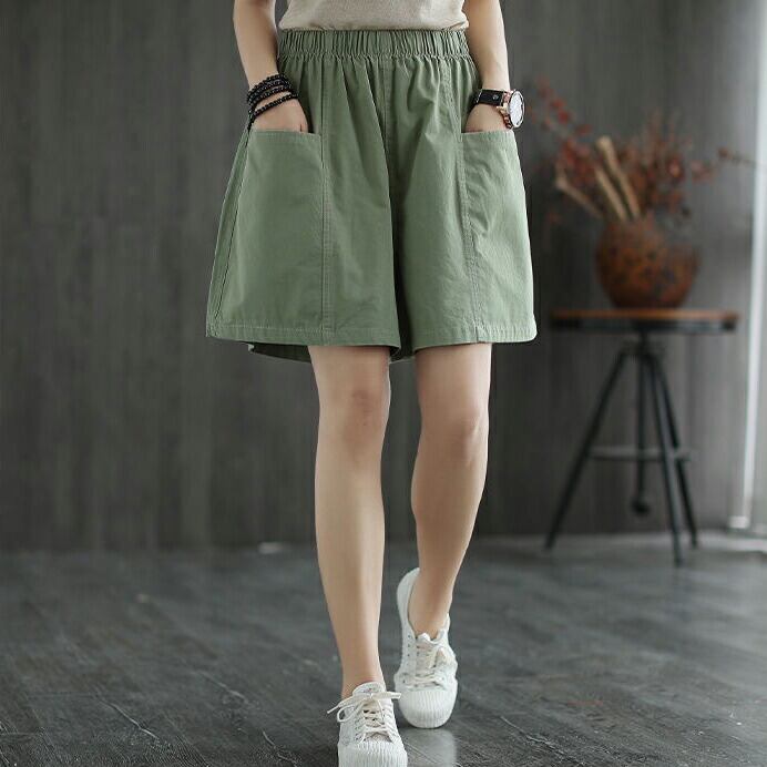 ◎【送料無料】【綿100%】レディース ワイドショートパンツ|ハイウエスト&ウエストゴム 可愛い夏コーデにぴったり!