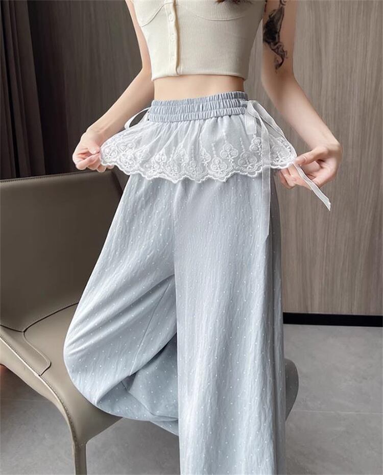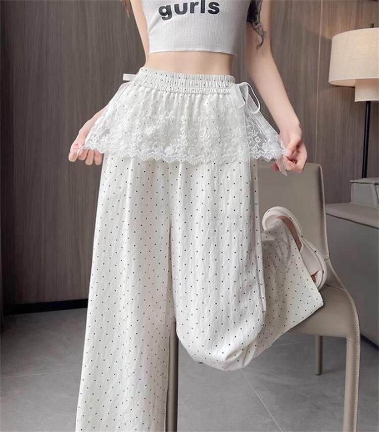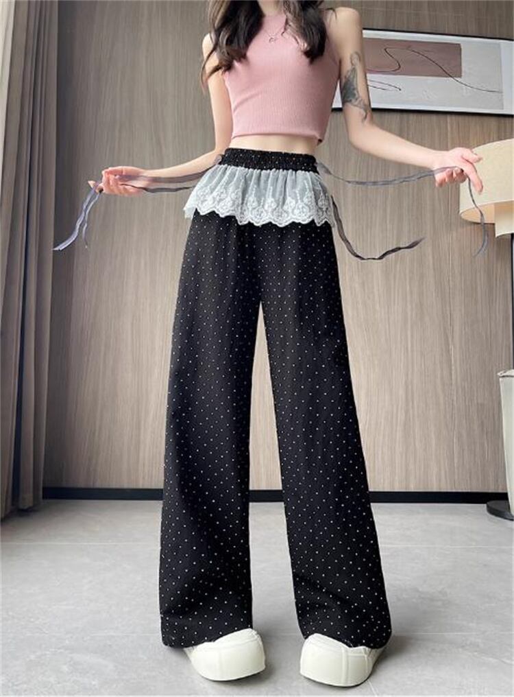 かわいいドット柄 ハイウエストストレートパンツ 2025夏トレンド 甘めカジュアル ワイドシルエット