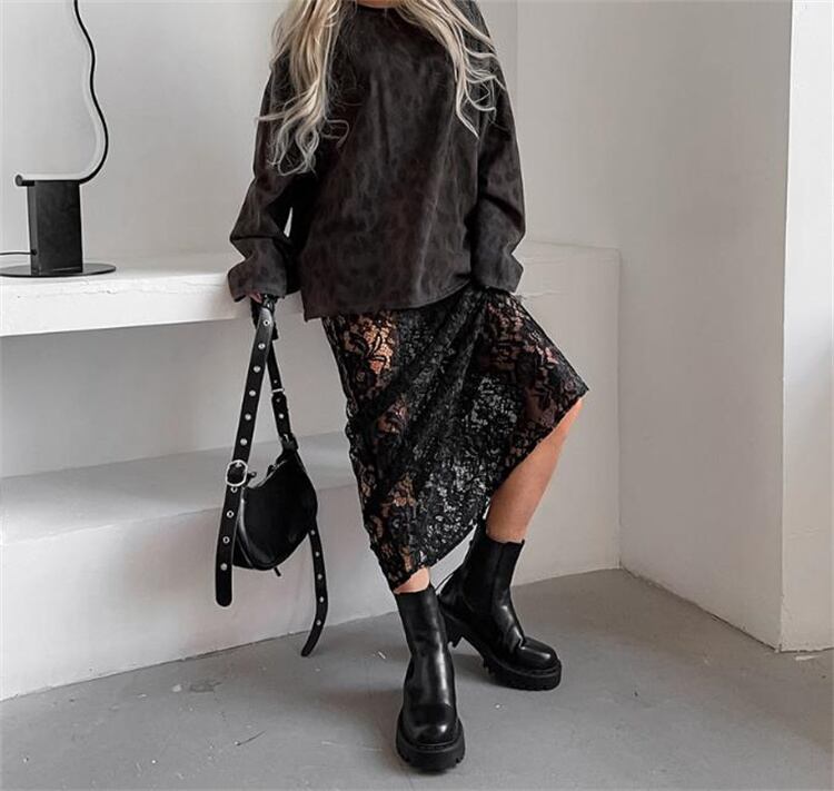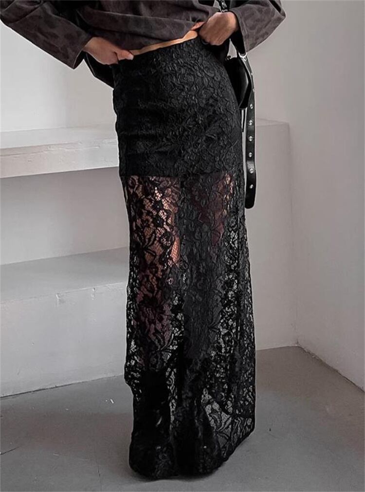◎【送料無料】レースミディスカート ビンテージ風ネットパッチワークロングスカート 透かし編みセクシー 2025夏