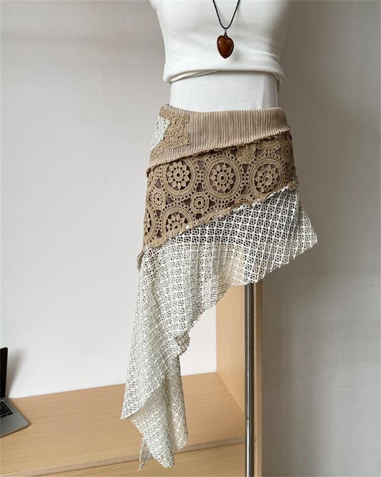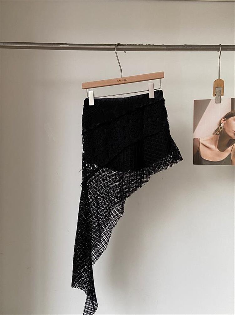 ◎【送料無料】計算された美シルエット レトロアシンメトリー レースアップハイウエスト ケーブルニットショートスカート