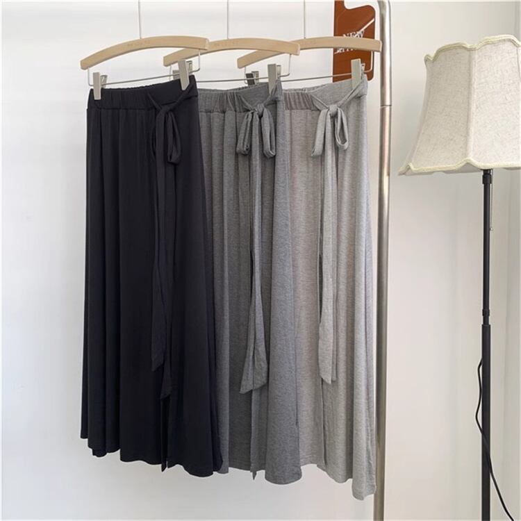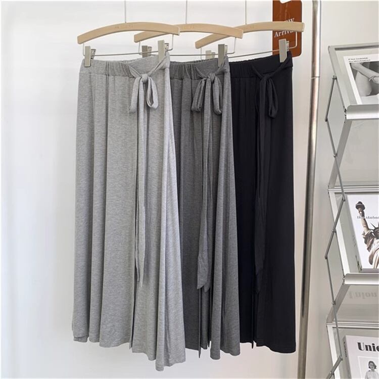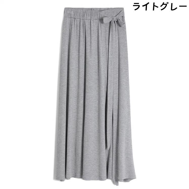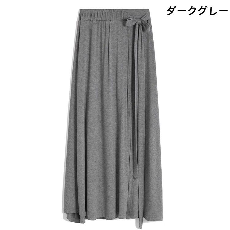 ◎【送料無料】丁度いいサイズでした ハイウエスト深開きAラインロングスカート リボン付きソフト素材
