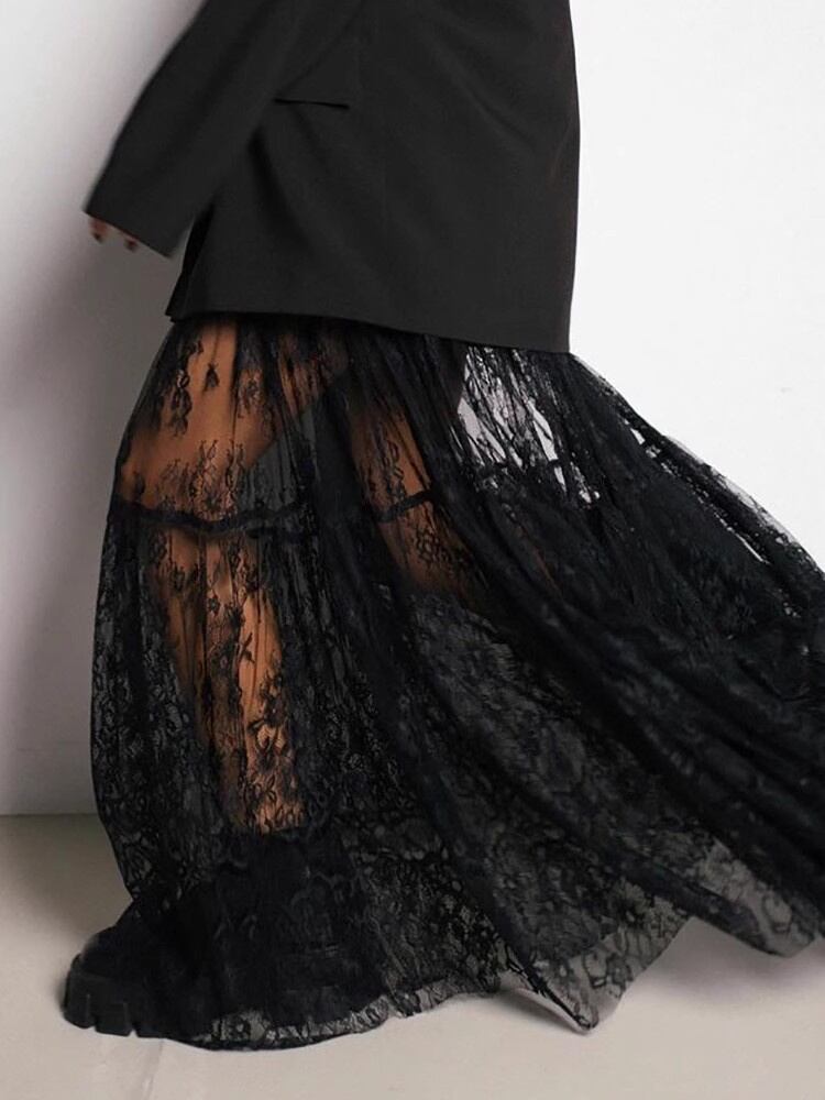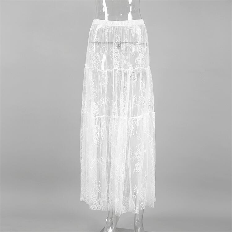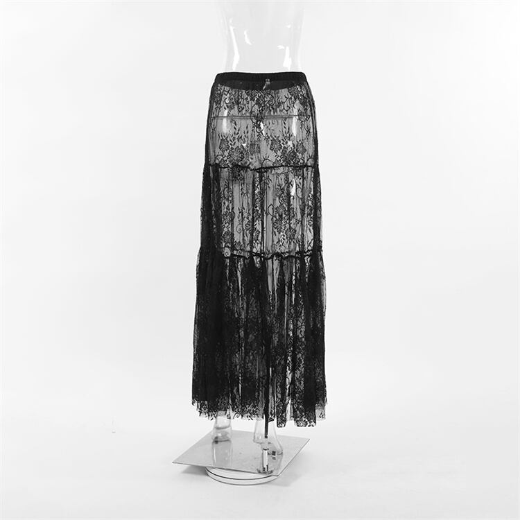 ◎【送料無料】大HITアイテム再入荷 エレガントレースロングスカート ハイウエストデザイン×透け感が女性らしさを演出