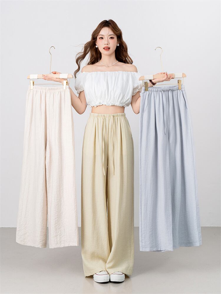 【スリム見え】リネン&コットンワイドパンツ 2025夏新作 ストレートデザイン ゆったり休閑パンツ