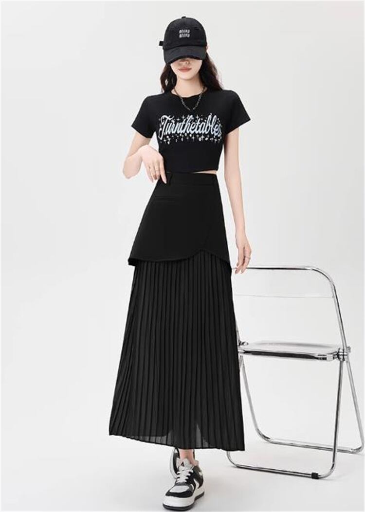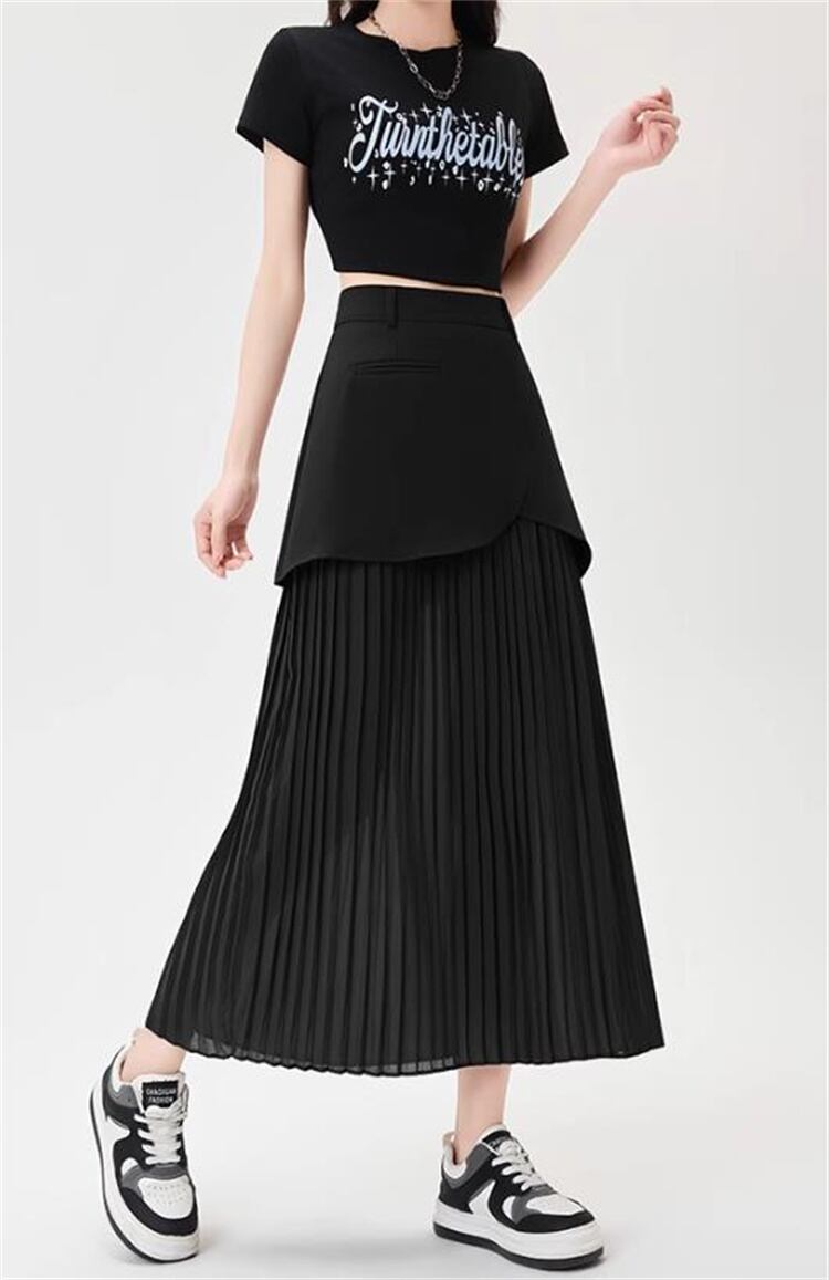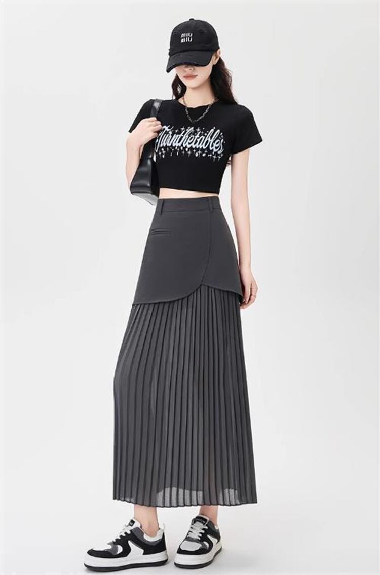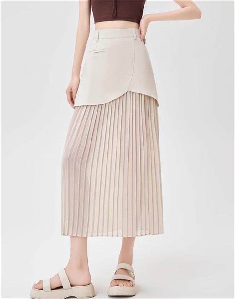 2025年夏 ハイウエストダブルレイヤー包み尻シフォンスカート プリーツストレート