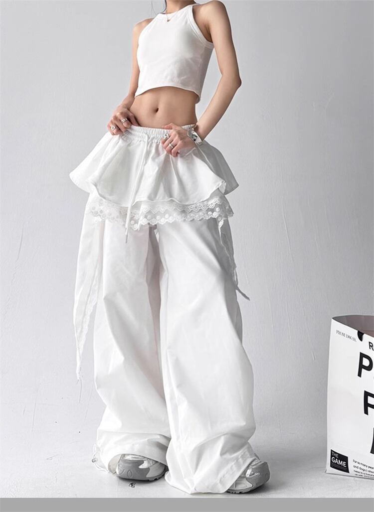 不規則裾 オーバーサイズワイドパンツ ストレートシルエット ロングカジュアル