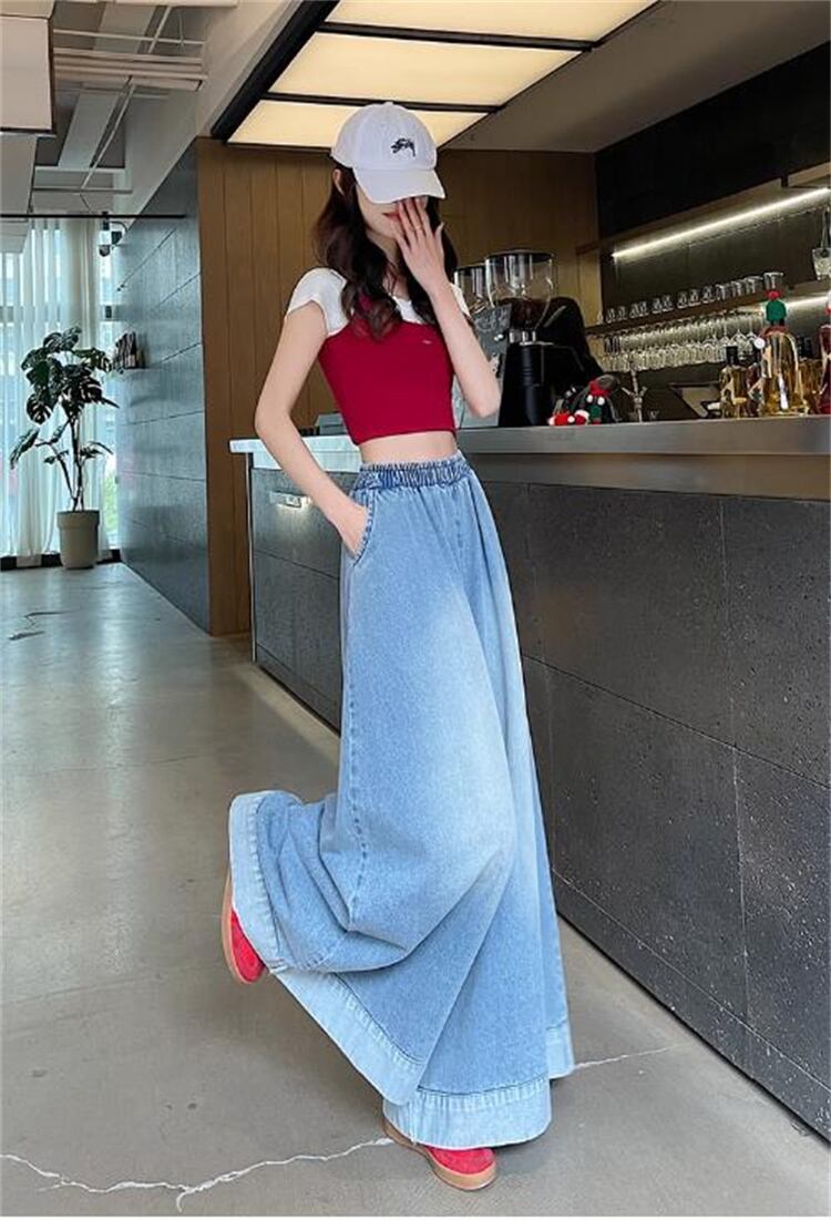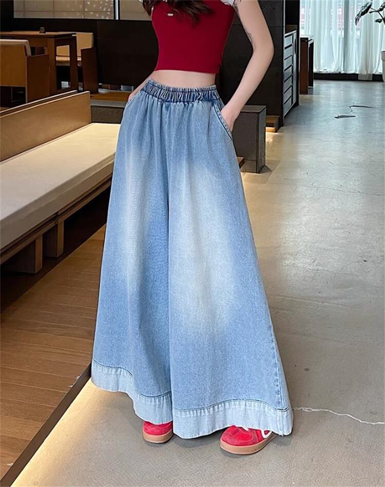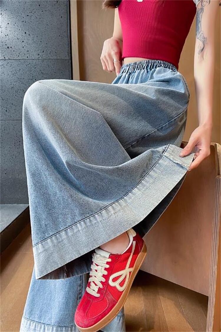 2025年夏新作 アメリカンレトロ デニムワイドパンツ 薄手伸縮ウエスト ハイウエスト