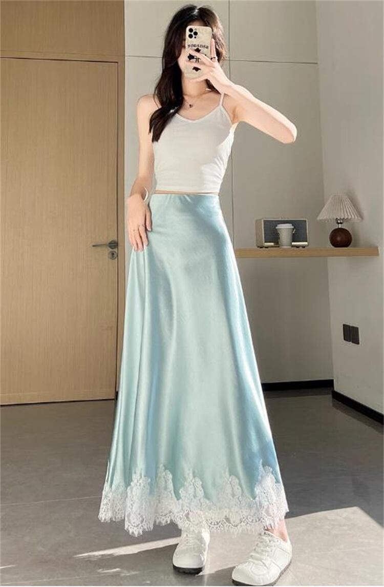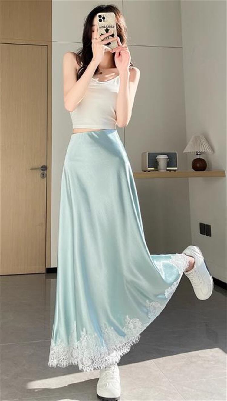 通勤に最適 ストレッチAライン サテンレースハーフスカート~