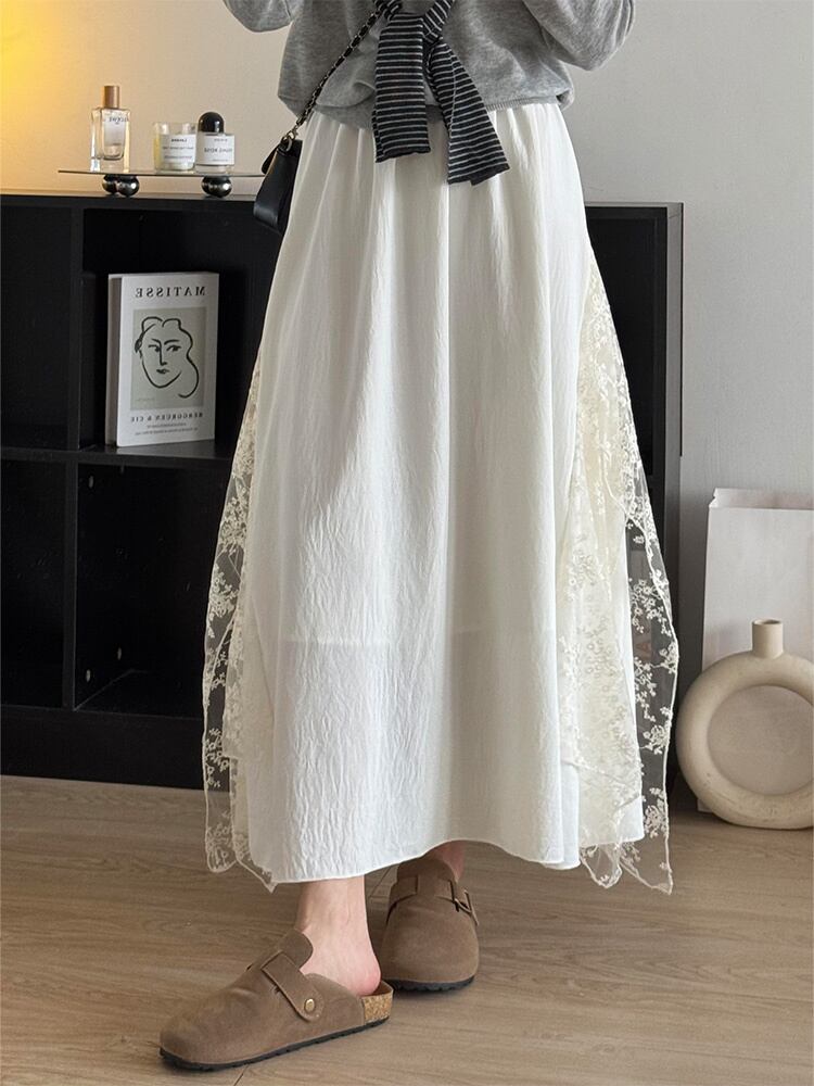 ◎【送料無料】独特なシルエットに魅了される レースデザイン ロングスカート 2025夏 新作 Aライン フレア 体型スリム