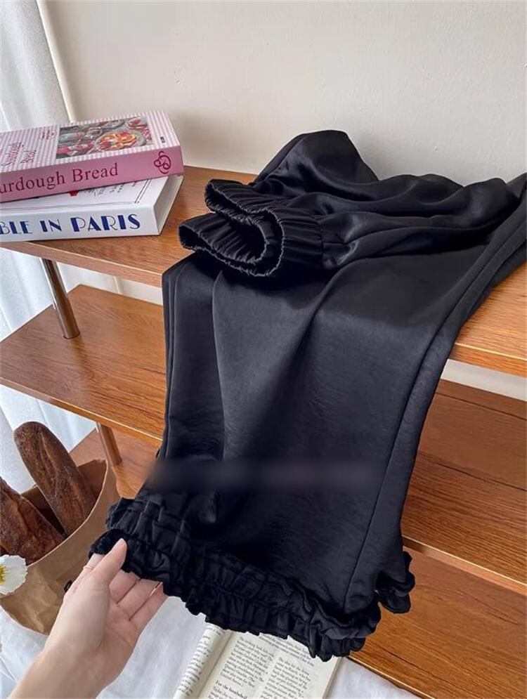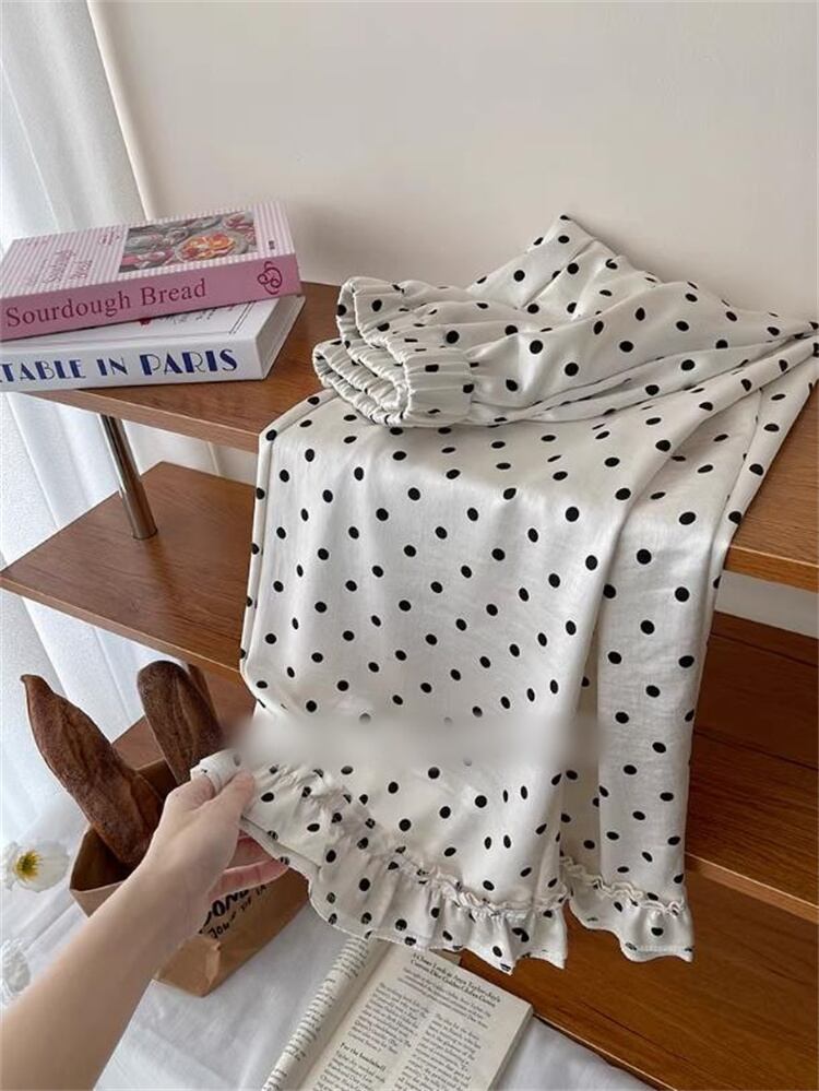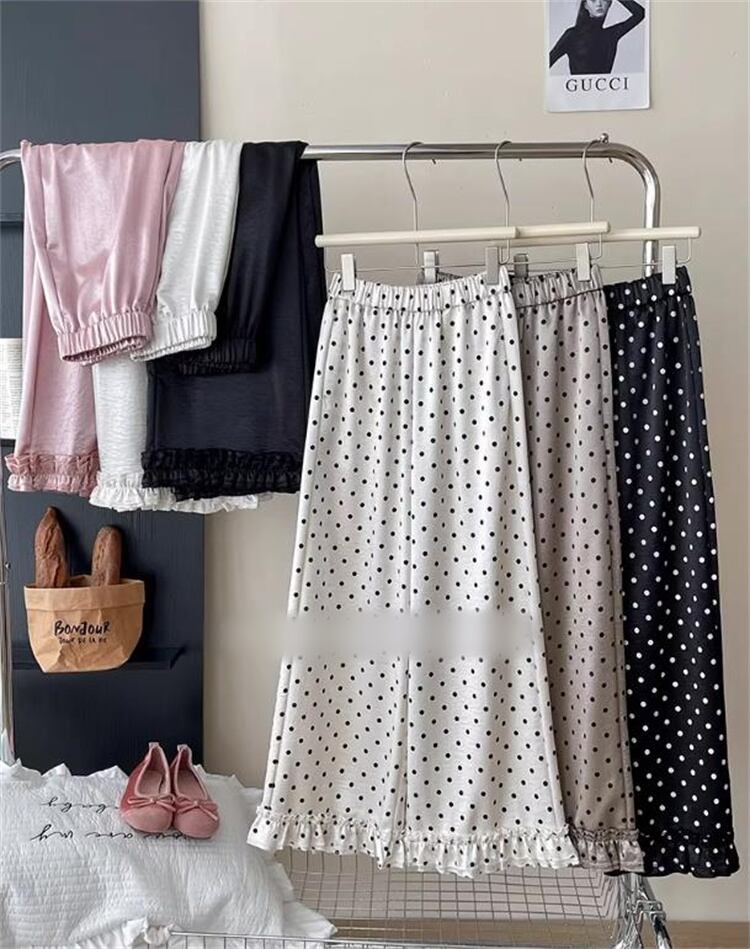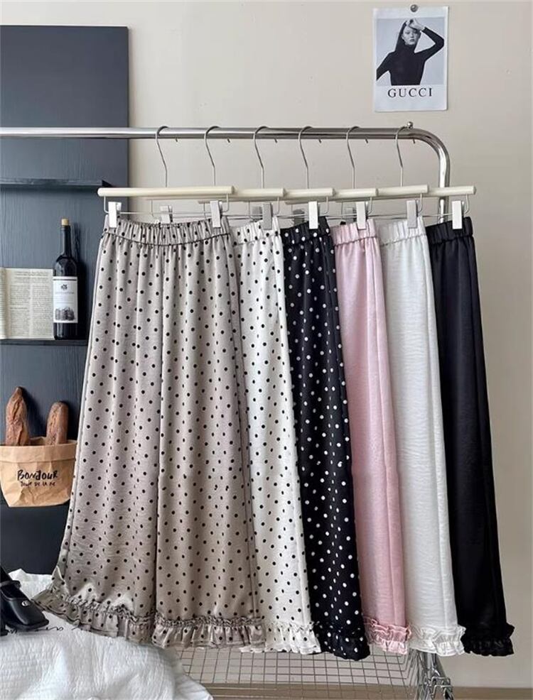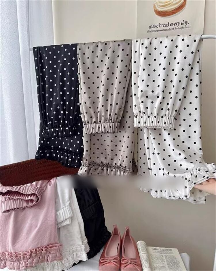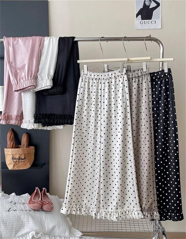 ◎【送料無料】また購入します 伸縮ウエスト ワイドストレートパンツ ドット柄 ゆったりカジュアルロングパンツ