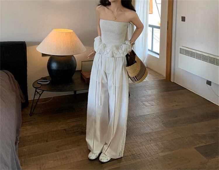 ◎【送料無料】人気のあるデザイン コットンリネン レースアップ ストレートパンツ ハイウエスト 大人カジュアル